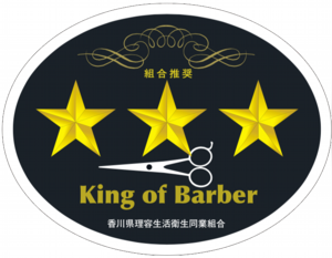 この組合推奨・理容三ツ星マークは香川県理容生活衛生同業組合最高の権威ある証としております。